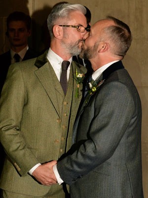 Wale e Allard, uma das primeiras uniõesapós lei entrar em vigor. (Foto: Leon Neal/AFP)